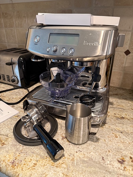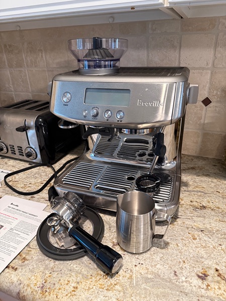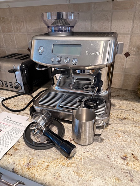 From the Breville website: Barista quality performance with an intuitive interface that displays all the information you need to create third wave specialty coffee at home. The integrated grinder delivers the right amount of ground coffee on demand, for rich full flavor. With a ThermoJet heating system, 3 second heat up time and precise espresso extraction, you go from bean to cup faster than ever before.
