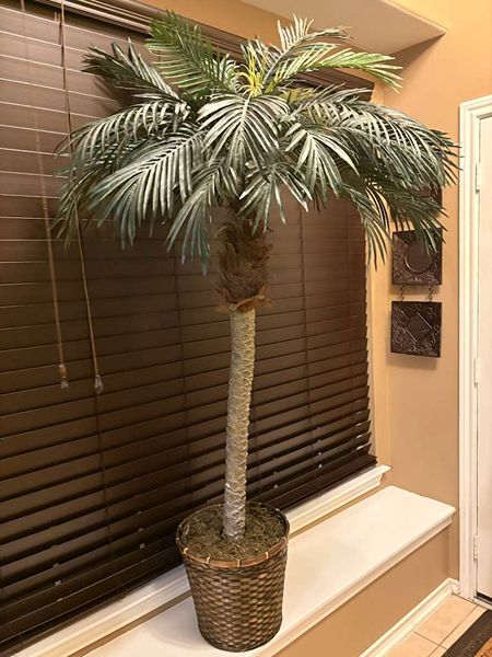 Beautiful High artificial indoor Palm Tree with basket, great accent to your special place home or office. In Great condition measures: Height 75” width 40”. Basket height 11” x 14”. No smoke or pet odors.