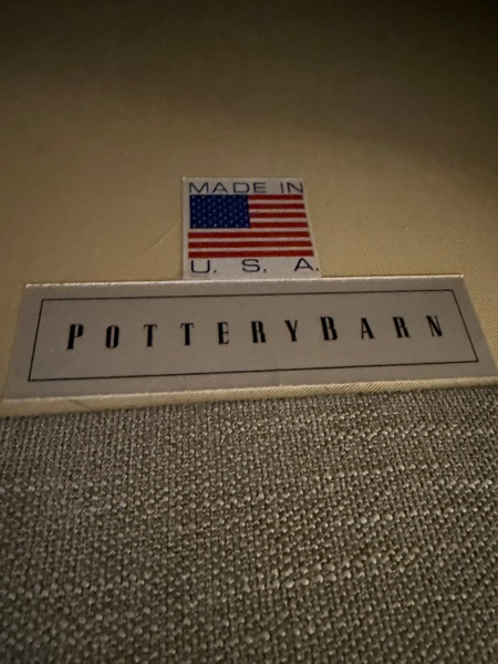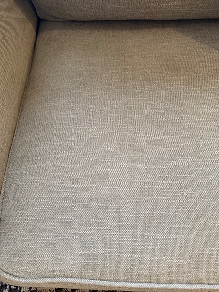Like new condition. No rips or stains.  Cushions still has that “firmness” to it. This is the grand sofa so it’s deeper. 40” deep and 89” Wide. In the color “Dove Gray”.  Performance Heathered Basket fabric.