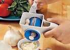 This Tovolo Garlic Slicer takes the work out of slicing garlic perfectly. The rotating blade cuts beautifully consistent slices. Now you can evenly season your favorite dishes with a garlic flavor that's equally savory bite after bite!