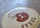 Vintage Texas Longhorn's Footstool. Early to mid century, Real Leather with turned legs, in very good vintage condition. Dimensions. 10' h x 14.4 diameter Pick up location near Downtown Conroe