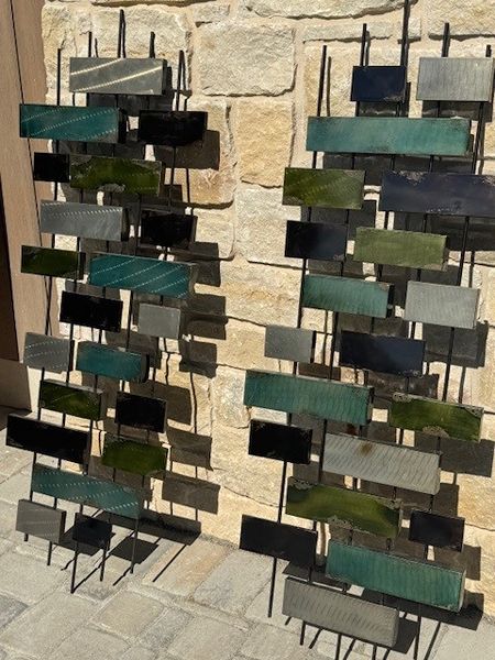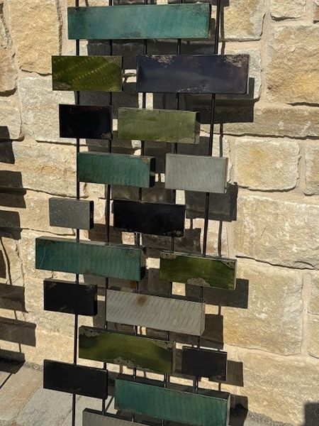 Modern wall art with colored metal panels on a metal frame. 2 pieces, each piece is 55" x 20". Venmo or cash only. Must pick up, Conroe area.