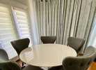 Round 54”, White Lacquer Table wit 5 chairs, $1100. Purchased from High Fashion Home.
