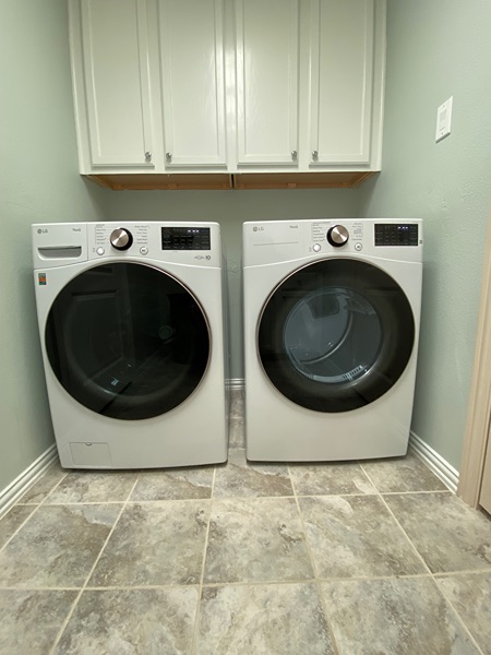 LG ThinQ washer and dryer. Gently used for one person. Comes with new manuals and attachments to secure the drums for moving. Quiet when running. White with champage turn dial and champage around each doors. Tinted doors with interior light on dryer. Professionally delivered and installed. Comes with new hoses. Purchased in April 2025. Selling residence so must sell. Must have your own means to disconnect the hoses and remove from residence, including your own transportation. Please include your phone number when inquiring for a call back. Serious inquiries, only.