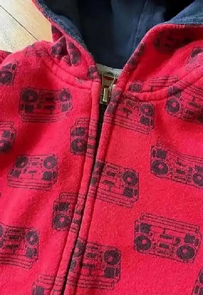 Red hoodie with boombox print and pockets. Size 5T…$10 firm