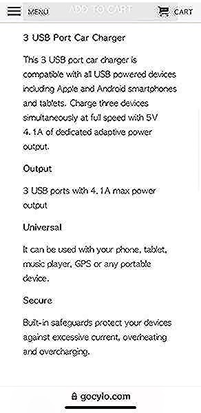 This 3 USB port car charger is compatible with all USB powered devices including Apple and Android smartphones and tablets. Charge three devices simultaneously at full speed with 5V 4.1A of dedicated adaptive power output.