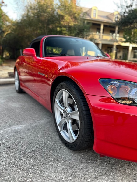 New Formula Red is one of the most sought-after and vibrant colors offered on the S2000. The paint maintains its deep, glossy hue accentuates the car’s beautiful lines. It turns heads wherever I go, and multiple techs at the Honda dealers have told me it's the nicest S2000 they have ever seen. The exterior and interior are virtually immaculate, as are all the mechanics. It is always garage kept and rarely been in the rain.
