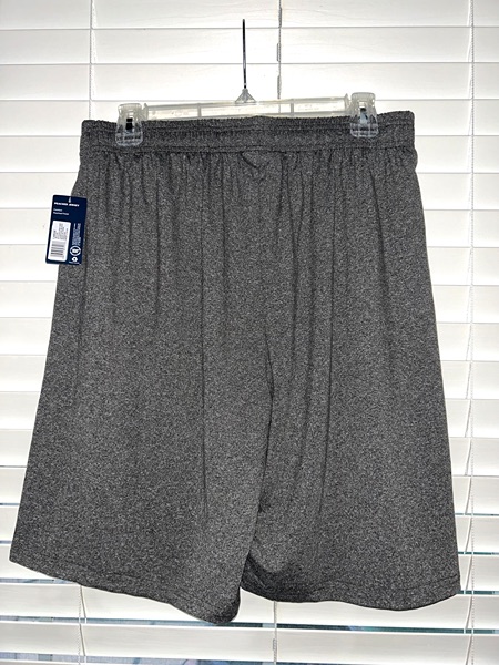 Men's large shorts, with pockets, drawstring, and 9-inch inseam. They are new with tags but have a small area that has come unsewn on inner left leg. Looking for a new home with someone that can sew or use fabric glue. They are super soft and seem very comfortable, I'd hate to throw them if there's a chance someone out there can fix the spot. $2