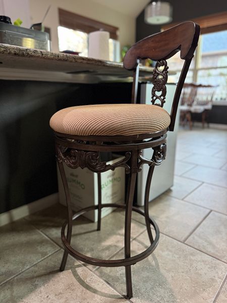 Seat height 27", wooden back height 39", seat size 19" in Dia, comfortable, cash only.
