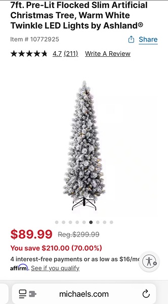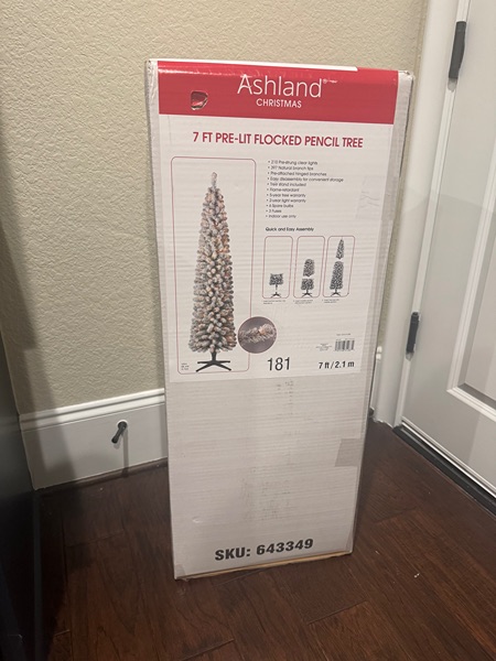 Unopened 7 foot pre-lit flocked pencil tree from Michael’s. Purchase price at Michael’s is $90. Asking $70. Located in The Woodlands.