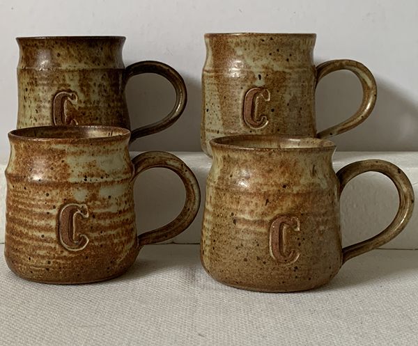 Coffee Mugs Artisan Handcrafted Pottery Set 4 Initial C