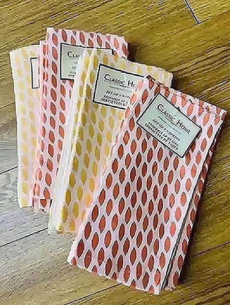 Four sets of cloth napkins (4 in each set) 16 napkins total! Colors are white, orange and yellow. Machine washable!