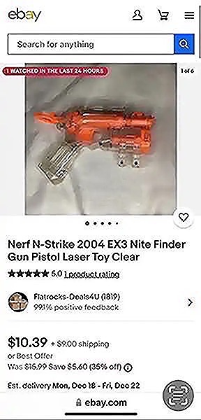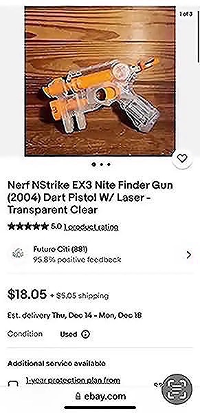 -Nerf gun 2004 Nerf Elite N-Stryke EX3 Nite Finder with red laser (tested, working)…$15 total, firm