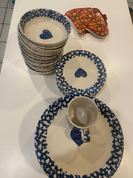 12 Dinner plates , 10 small plates, 12 Bowls ,13 mugs. Nice condition. 713-447-6945