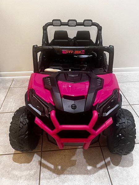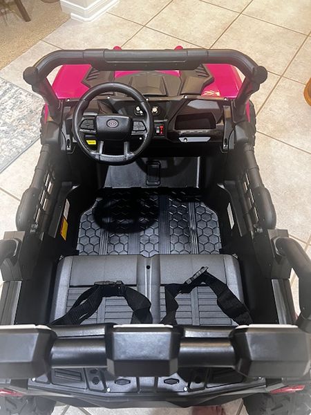 UTV W/MUSIC PLAY, COLORFUL LED IGHTS, PINK WDER 2-SEATER ELECTRIC JEEP WITH EXCELENT SAFETY PERFORMANCE RIDE ON JEEP IS A 2 SEATER WITH A SEAT WIDTH OF 19"WIDE ENOUGH FOR TWO CHILDREN TO STRETCH THEIR FEET COMFORTABLE, SOFT START AND BRAKE SYSTEM PREVENTS CHILDREN FROM BEING FRIGHTENED BY SUDDEN ACCELERATION OR BREAKING, DOUBLE LOCKABLE DOOR DESIGN, SAFETY BELT, PARENT REMOTE CONTROL MODE OFFER EXTRA SAFETY FOR KIDS. THE BRIGHT LED LIGHTS AND TOGETHER WITH THE REALISTIC COLORFUL LIGHT DESIGN WHICH MAKE JEEP MORE REALSTIC AND LOOK COOL WHEN DRIVING AT NIGHT.