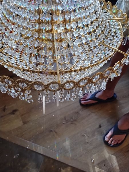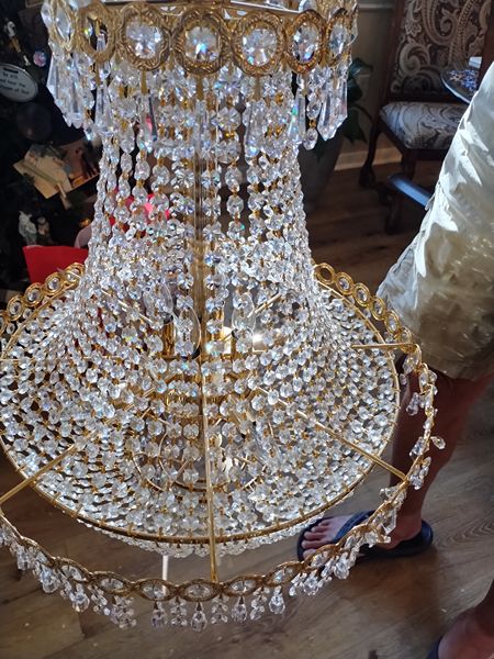 You can decide..either dismantle and use on your Christmas Tree or in a bowl to add some glitter to your decor...or you can use as a light fixture...sold as is....have no idea if it works..would need to re-wired and some of the prisms have fallen off...but they can be hooked back on.....