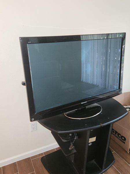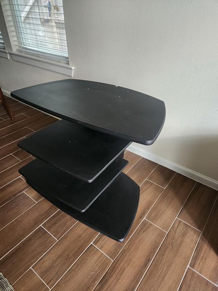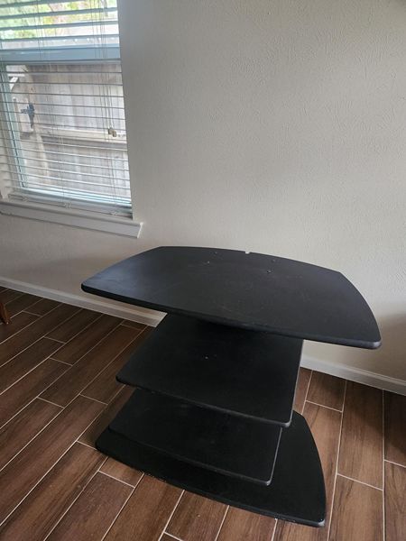 Three-tier black wood TV Stand. Very sturdy and compact.