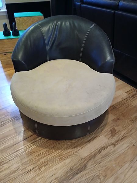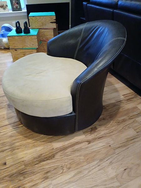 Perfect chair for a man cave.  Comfortable, comes with an oversize stuffed pillow not shown. Must pick up. Please text 281.507.5885