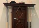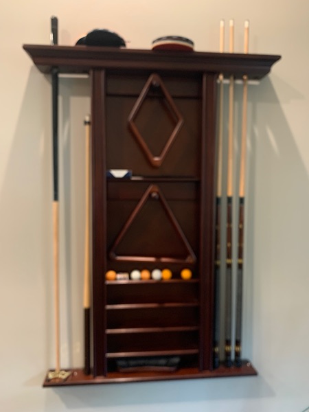 Billiard Factory Presidential pool table and wall stick/ball holder. Ping pong table insert. Includes 6 sticks, all balls, ping pong paddles included. 99" L x 55" W x 31" H. Good shape.
