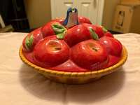 Vintage Italian Glazed Ceramic Fruit Basket Figure / Hand & Paint Made