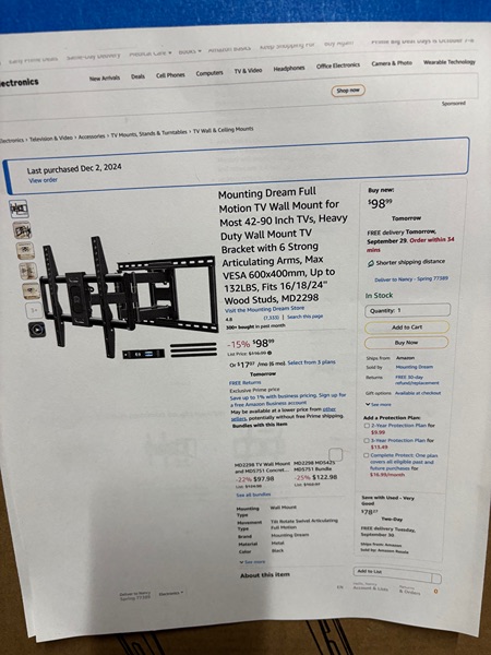 TV wall mount for 42-90 inch. New in box with 3 15' HDMI cables and audio cable. Great deal !