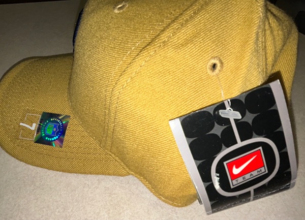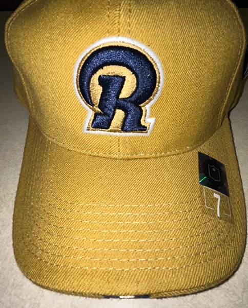 Gold fitted Nike hat, men's size 7, featuring the blue "R" logo outlined in white on the front and the NFL logo on the back. Made of wool. New with tags from smoke free home. $20