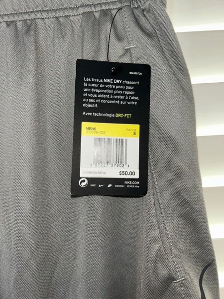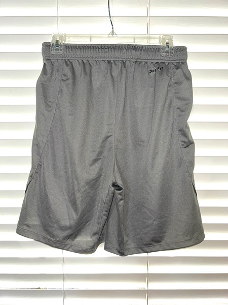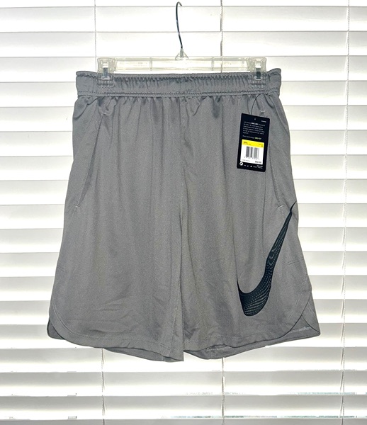 Nike Men's Dri-Fit Vent Moire Training Shorts in gray, size small with front slit pockets and inner drawstring. They still have the $50 price tag attached. 8-inch inseam. Smoke free home. $15