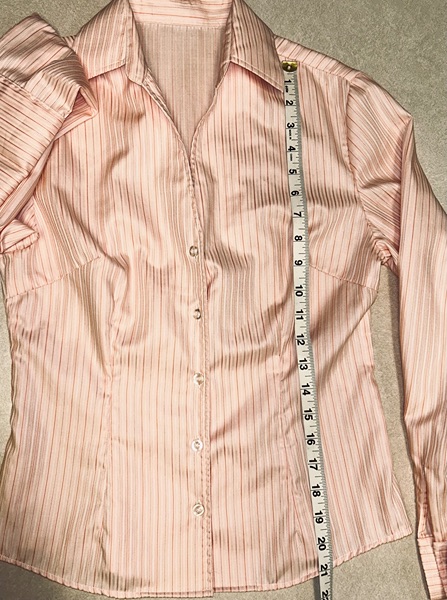 This is a custom made shirt, so there are no tags/labels/sizes. Measurement from shoulder seam straight down is about 21 inches; from pit to pit is 16.5 inches. Quality material and product, overall very good condition from smoke free home. Please note cuffs are meant for links, there are no buttons. $5