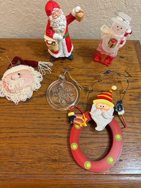 Nine ornaments ** The Santa ornament with the opening is acturally a frame & is made of metal & wood