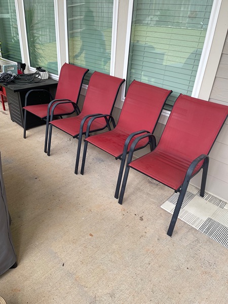 4 red patio chairs. Great condition, no rust. $40