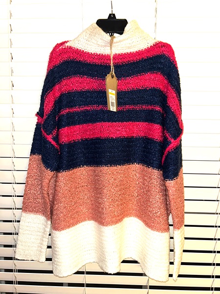 Long sleeve pullover with textured knit fabric and funnel neck. Size medium. New with tags from smoke free home. $15
