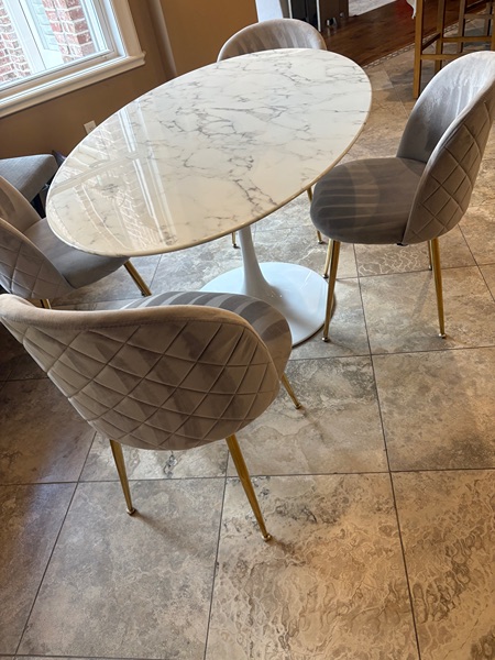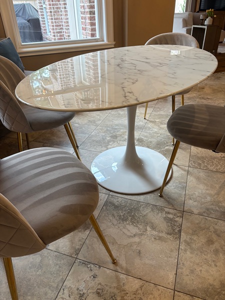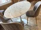 60" Oval-Shaped Mid-Century Modern Dining Table with Artificial Marble Top and White Base