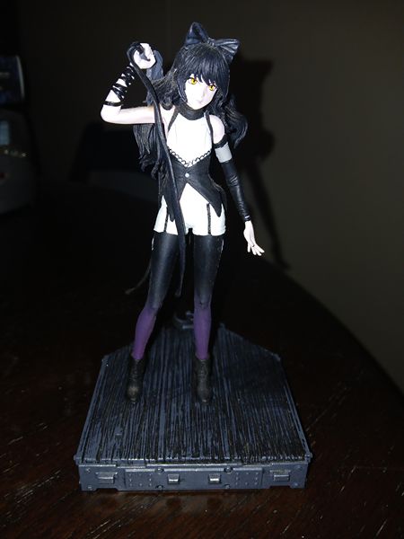 Detailed anime character figurine with black and white outfit. Blake Belladonna RWBY