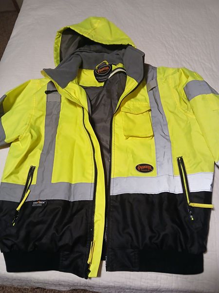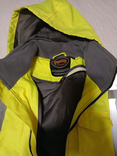 Stylish bomber jacket by PIONEER. Bright yellow exterior with gray removable lining. Size small