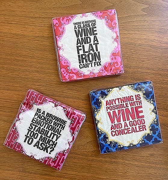 3 packs of 20 napkins in each set. Cocktail napkins are 3 ply and 9 7/8” square…$15 total, firm