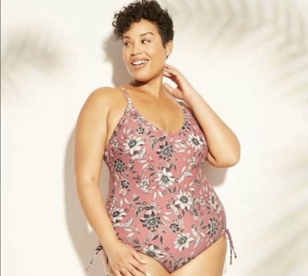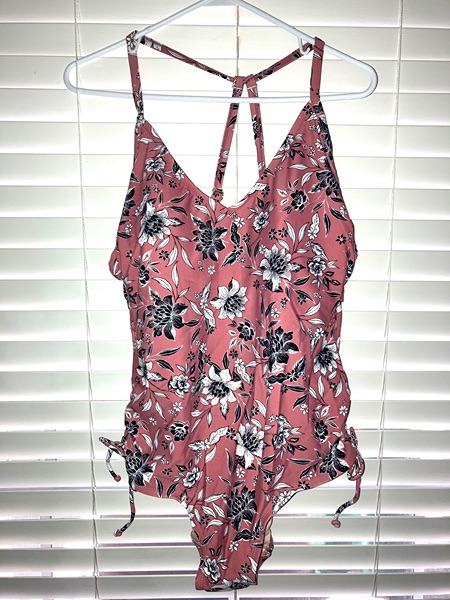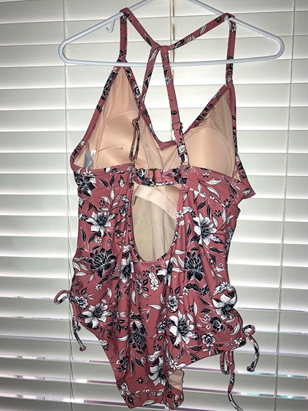 Kona Sol Plus Size Side Cinch Floral One Piece Swimsuit, 2 sizes. Mauve pink, size 18w or 22w. Brand is Kona Sol. Built in bra, v-neckline, adjustable straps. New with tags and from smoke free home. $10