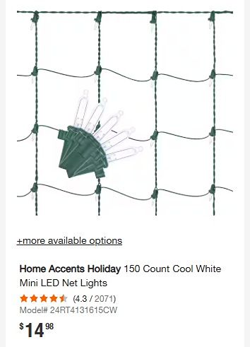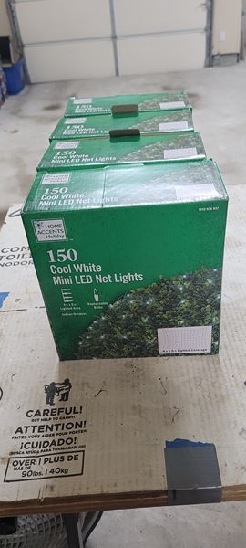 Home Accents - 4 boxes of mini net Xmas lights - indoor/outdoor - cool white. Each box contairs 150 mini lights arranged as 4x6ft net. $60 value at Home Depot. Almost new - used for (2) days