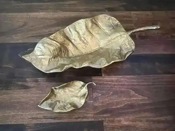 By Devi Designs, from Pottery Barn, early 2000’s, never used. Large leaf 12” x 5” x 3”, small leaf 5” x 2 1/2” x 1 1/2”. Display in any room or use to display jewelry or other trinkets. (Orig. $79)…$40 firm!