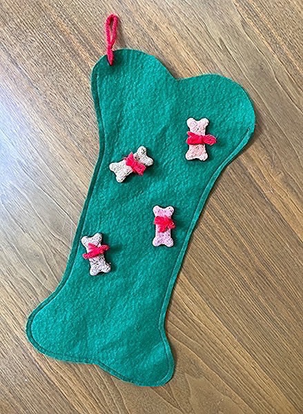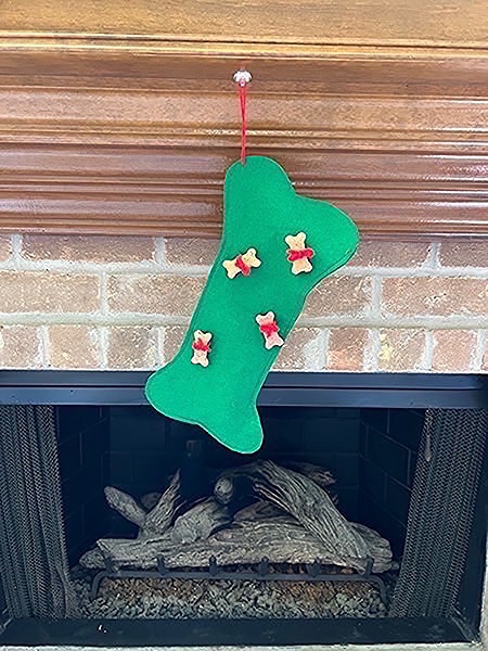 Attach your doggy’s favorite treats to their very own stocking! 20” x 8”…$20 firm