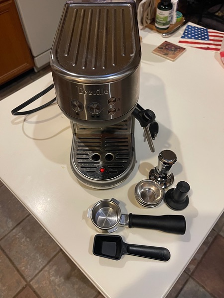 Stainless expresso maker in excellent used condition. Incudes everything pictured, asking $150.