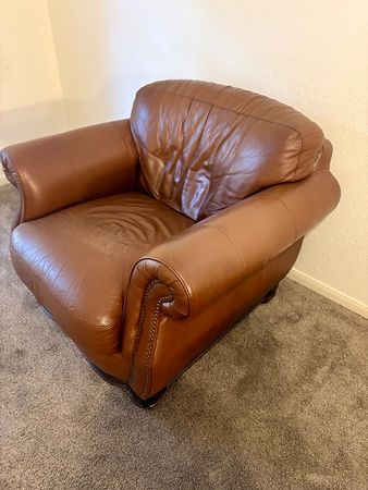 Douglas power recliner. Very soft leather and in great shape. Super comfortable.