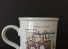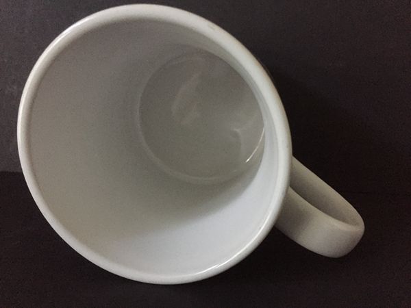 Stoneware cup, approximately 3 ½” tall, 3 ¼” diameter. Gently used. No discernible damage such as chips, cracks, disintegration of graphics, or repairs. No interior spoon markings. Dual message and graphics, front and back. Nostalgic holiday gift or collectible.