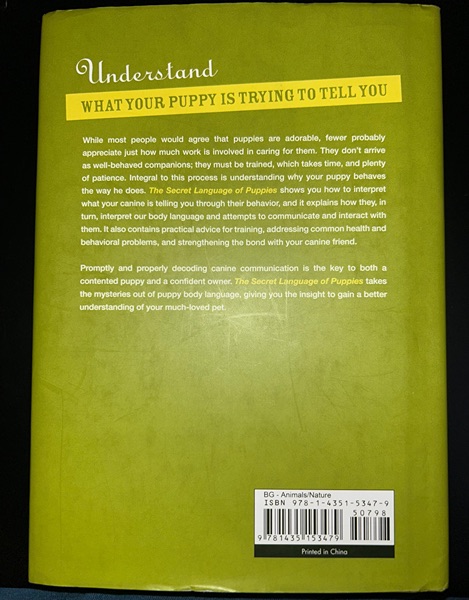 The Secret Language of Puppies hardback book in very good condition from smoke free home. A helpful guide for first time puppy owners. $3