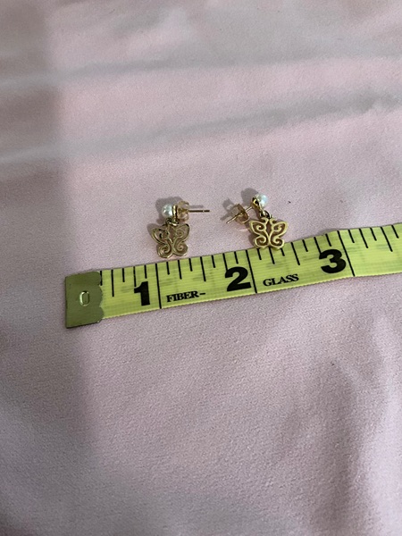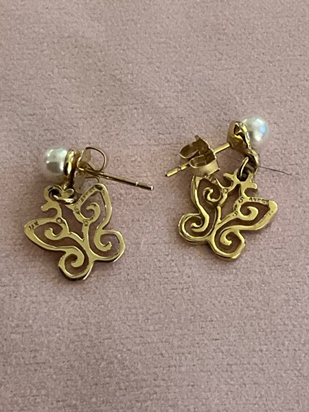 These gorgeous earrings are from the original James Avery collection. Retired 14k gold, stamped Avery and 14k on the back. Authentic pearl stud with dangling gold butterfly. Recently polished and inspected at James Avery. Complete with new backs, JA gift box and protective cloth envelopes included. Perfect and ready for Christmas. Listed on other sites, don't miss. No one else will have these!