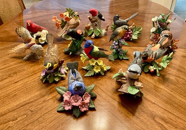 Lenox ceramic birds. Great for bird lovers to enyoy. Perfect for gifts. Original boxes included. $15 each, 2 for $20, $150 for all 14. List: blue grosbeak, European nuthatch, Baltimore oriole, painted bunting, hooded warbler, autumn right pheasant, redwinged blackbird, yellow breasted chat, saw whet owl, violet green swallow, grey catbird, red-headed woodpecker, horned lark, summer tanager.