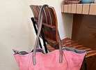 Coral canvas tote bag with faux leather straps.  Reversible and comes with attached coin purse…$25 firm