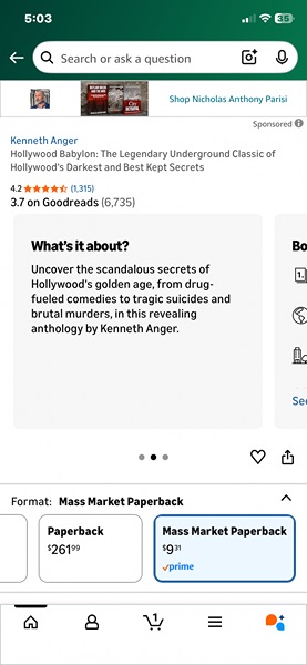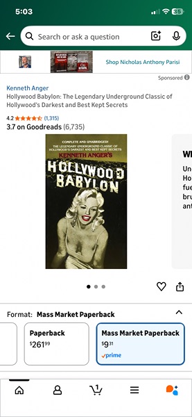 Candace Owens recommended Hollywood Babylon to her listeners. I purchased the book from EBay. Kenneth Anger gives a glimpse into the chaotic world of Hollywood. Interesting read...