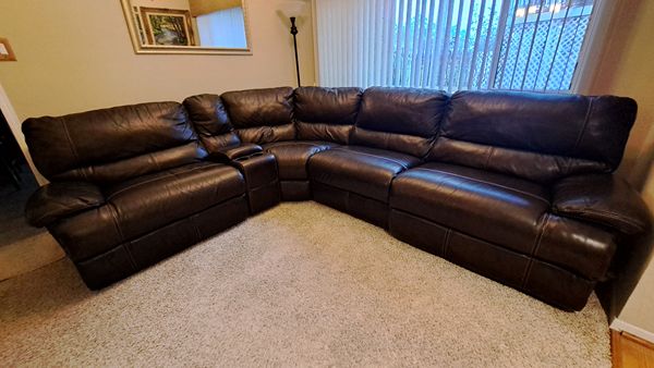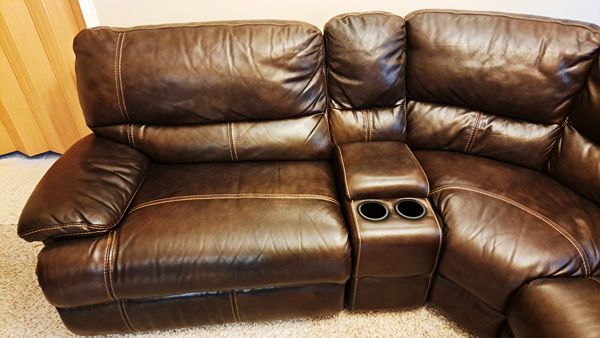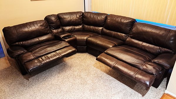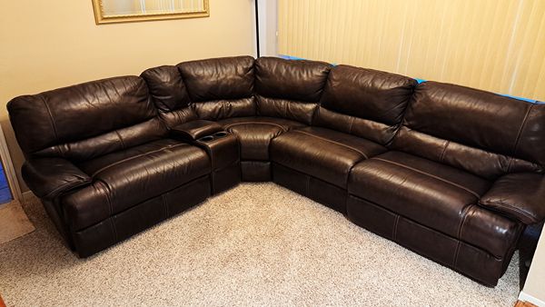 Up for sale a VonKurt 5-Piece Leather Reclining Modular Sectional with Console, barely used, like new.