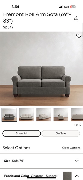 This set is from Pottery Barn Fremont Roll Arm Collection—Charcoal gray color. It’s in good condition. Bottom cushions are memory foam which makes this living set super comfortable. Normal wear.