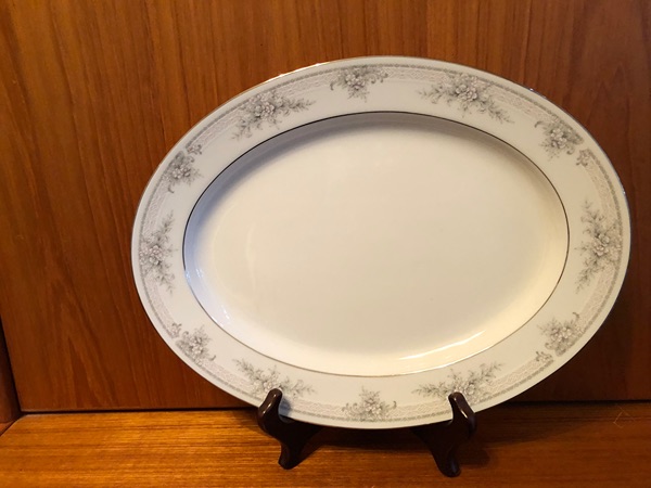 Lovely platter in white with silver rim and silver flowers. Diameter Is 10 inches. Would work for most any holiday dinner. Very good condition. Asking $5.00.